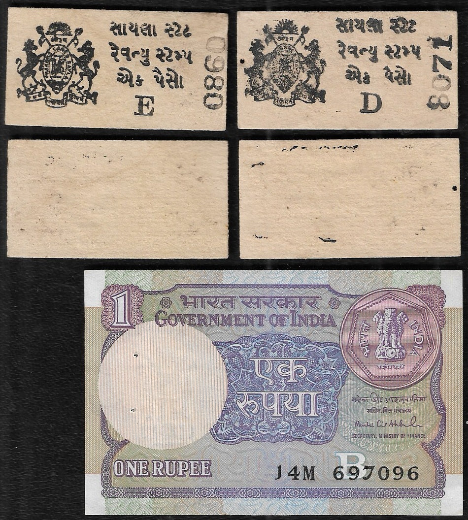 1 Paisa cash coupons of Sayala State, issued from 1940-45. The obverse bears the coat of arms of the Sayala state, and the denomination in local script, the reverse is blank. These are coupons/notes of Series D and E - both of these are listed in major catalogues.